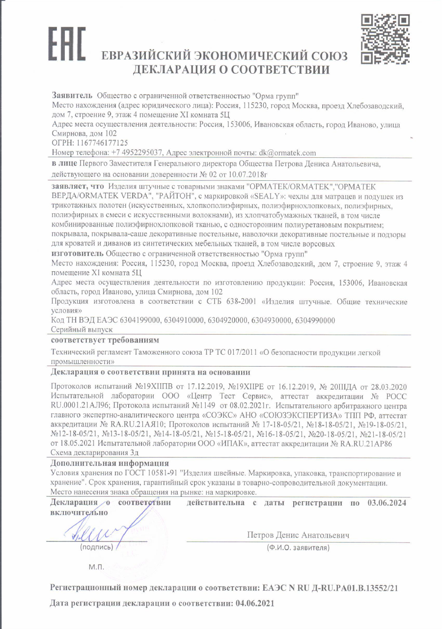 Гарантия распространяется на матрасы, кровати, основания и аксессуары представленные на нашем сайте.